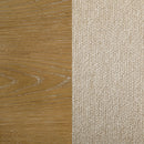 Infuse your kitchen or dining room with the inviting warmth of a modern farmhouse dining set that includes a round table and four side chairs. The set is designed for casual enjoyment and vintage style, complete with a starburst wedge veneer pattern on its charming tabletop. The base of the table adds thick supports, including flared legs and crossing stretchers enhanced with joinery details. The set is ideal for a compact space, seating four comfortably with its 54-inch tabletop diameter. Its brown oak wood finish extends to four side chairs, each with a ladderback and padded seat covered in latte finish upholstery for a versatile look.