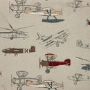 Fuel their dreams of being an aviator! Different old-school plane designs wrap around this comfortable, miniature sofa. The beige base color adds to the vintage feel of this piece.