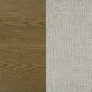 Upgrade to the inviting ambiance of this modern wooden dining set that includes a rectangular table and side chairs. It creates a warm and welcoming ambiance in your dining room, featuring a brown oak wood grain finish that pairs beautifully with light tan upholstery. Chairs feature foam cushions and a robust wood base design, augmented with tapering legs that provide ample support. The rectangular dining table features round column legs with rounded corners to create a seamless, cohesive look and feel. Choose a stylish centerpiece or lovely linens to complete the look.