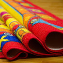 ABBEY Multi 5' X 8' Area Rug, 5x8, 10lbs. The kids will love this colorful rug! Each piece is made of 100% high quality soft nylon with non-slip cross pattern backing for hard surfaces. The kids will for sure roll around these rugs, so they feature a thick cushioned gel backing for extra com fort. A new 16-color combo technology was utilized to create bright and vivid details. Light weight for easy cleaning, the surged edges are reinforced for durability. Features: Power Loomed Pile Height: 0.30" Backing: Non-slipping Gel Nylon Made in Indonesia